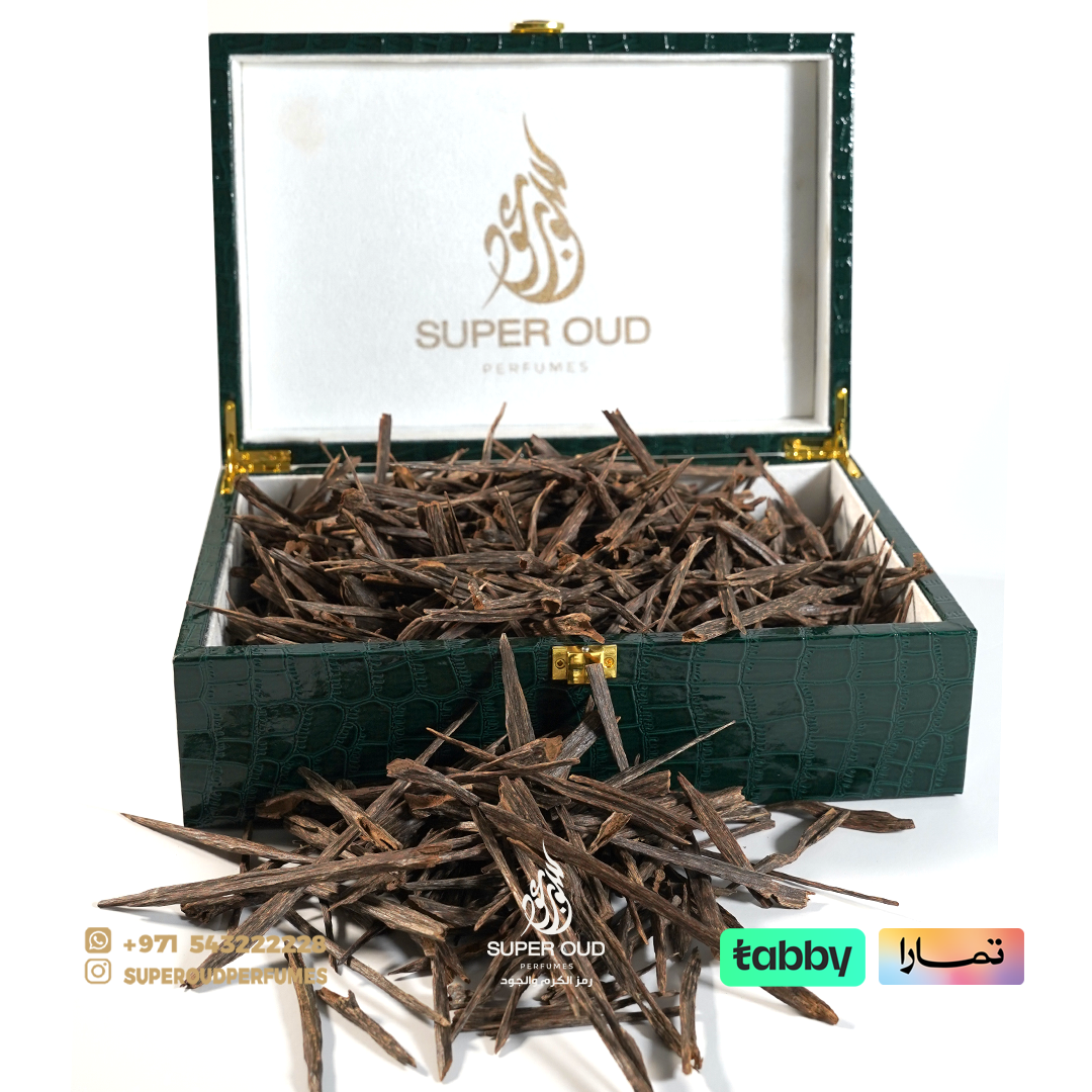 عود هندي من مانيبور بدرجة تربل سوبر، يتميز بخشبته الخفيفة وشكله المعروف على هيئة كسر السِلّة.