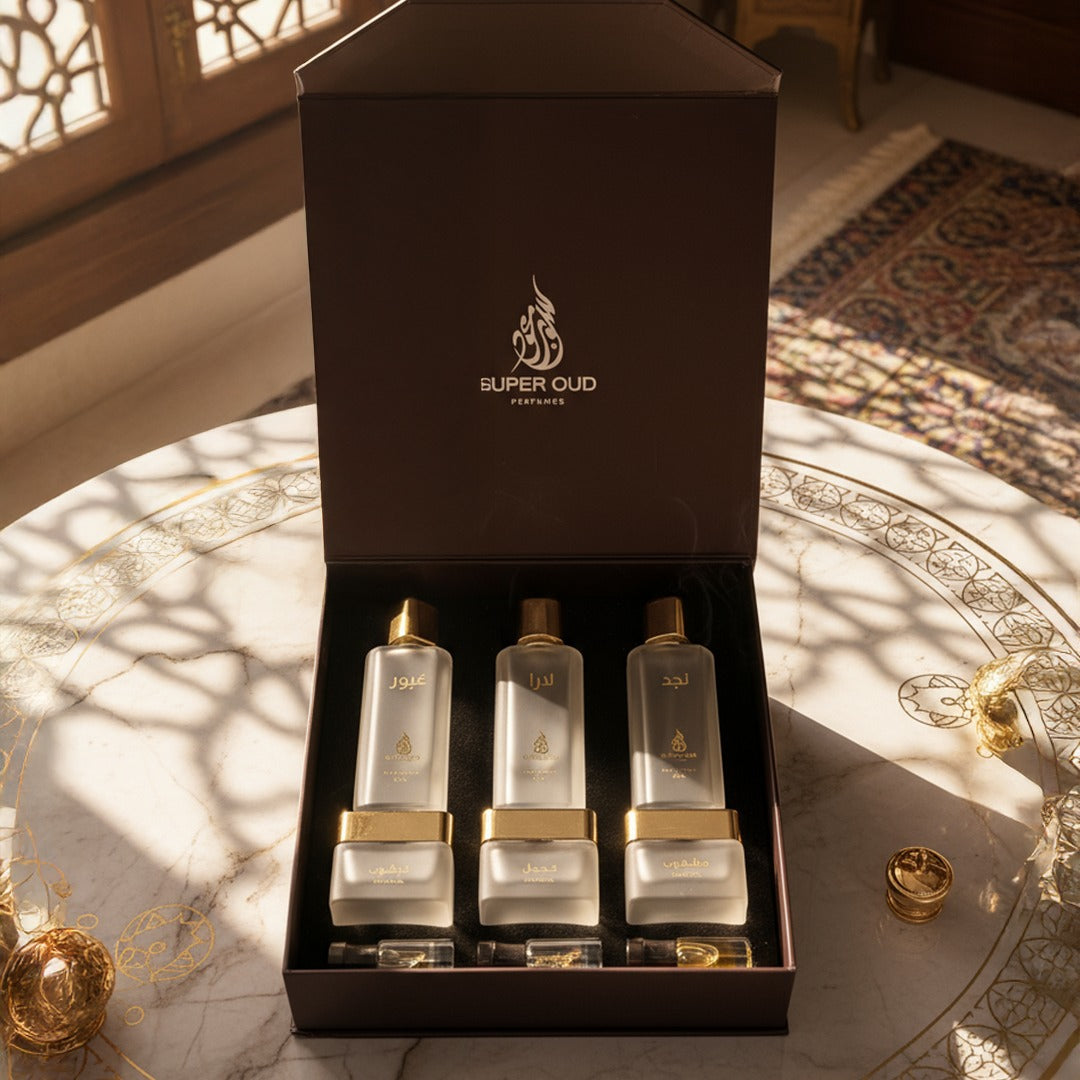 ارتقِ بتجربة العطور الخاصة بك إلى مستوى جديد من الفخامة مع المجموعة المميزة من سوبر عود، والتي تضم ثلاثة من العطور الأكثر تميزًا: